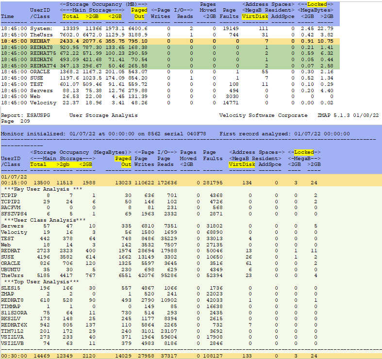 - ESAUSPG - User Storage Analysis - Shows information about user storage utilization.